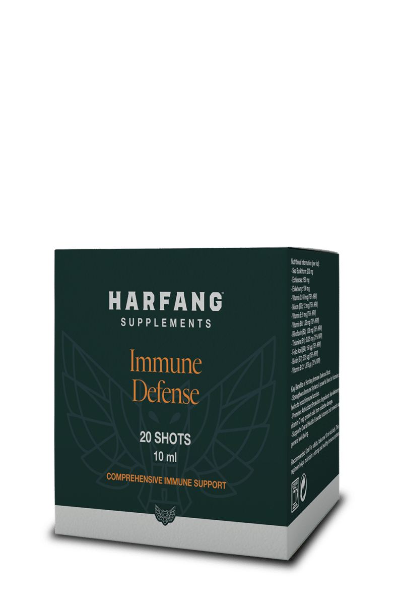 Harfang Immune Defense Shots provide comprehensive immune support with a blend of sea buckthorn, echinacea, elderberry, and essential vitamins. Perfect for daily use to keep your immune system strong and healthy.